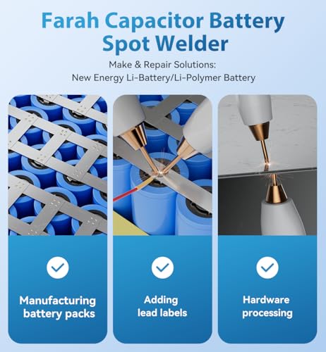 Efficiënte reparatie en productie van batterijpack: ingebouwde zeer efficiënte Farad-condensatorbatterij, maximaal uitgangsvermogen van 10,5 kW, perfect voor elektrische en elektronische reparaties en batterijpack-productie. Het is een goede oplossing voor jou om lithiumbatterijen/lithium-polymeerbatterijen met nieuwe energie te maken en te repareren. batterij puntlasapparaat