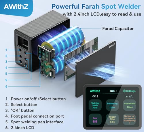 AWithZ puntlasapparaat met Farad-condensator, ondersteunt koper/nikkel/nikkel/geplateerd. Voor 18650 LifePO4 lithiumbatterij